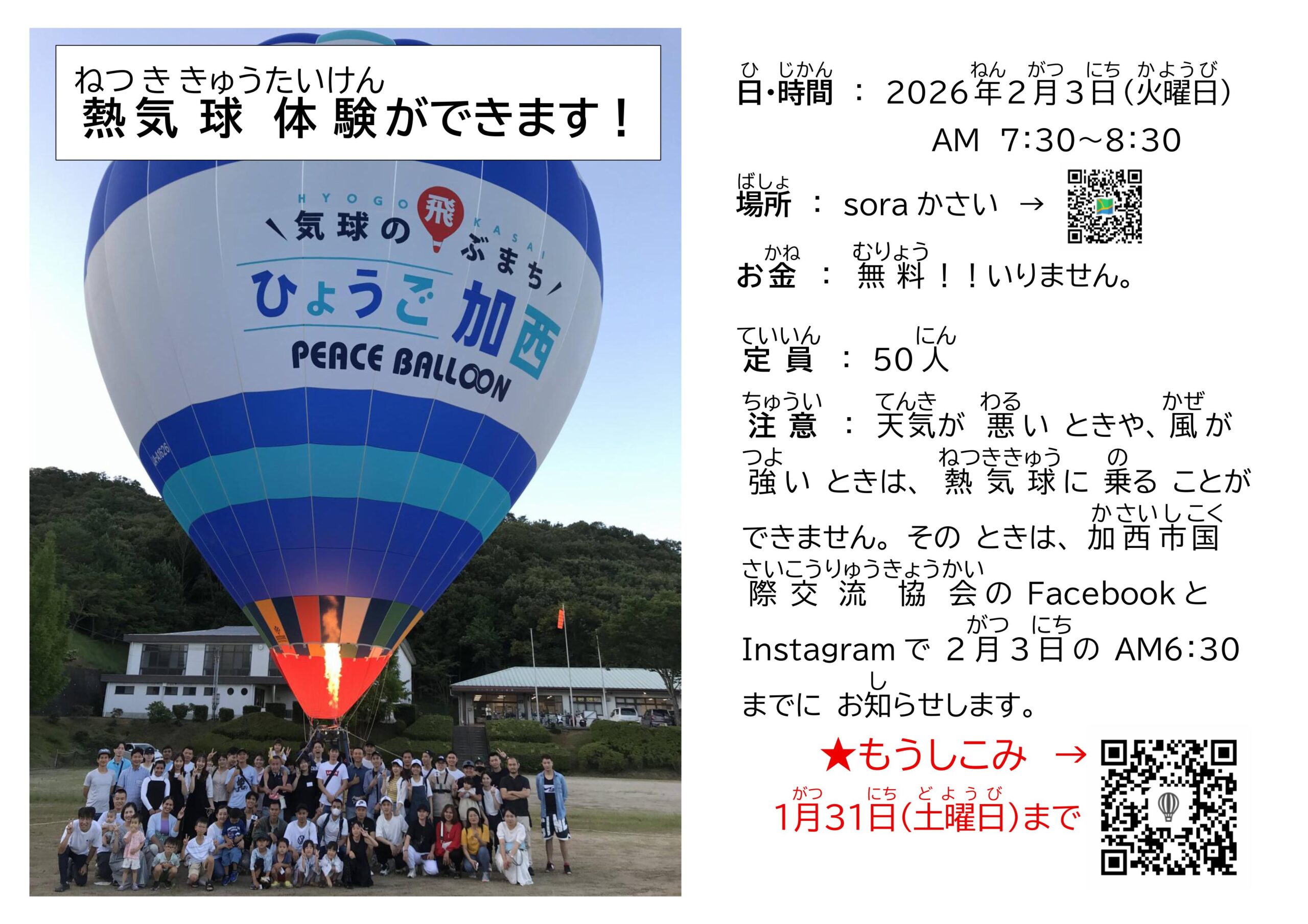 外国の方、対象イベント【気球体験】